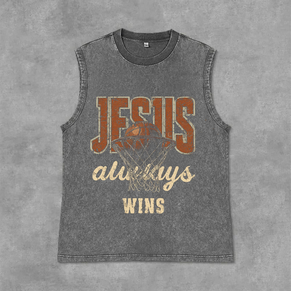 Christianartworkshop Jesus Always Wins Basketball Unisex Washed Tank Top