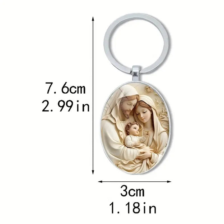 Classic Oval Holy Family Keychain in Soft Tones: Eternal Emblem of Faith - Filled Family Bonds