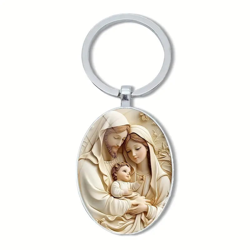 This keychain showcases the Holy Family—Jesus, Mary, and Joseph—an eternal symbol of love, devotion, and togetherness. It reminds you daily of God's guidance, the power of family bonds, and faith's beauty. -