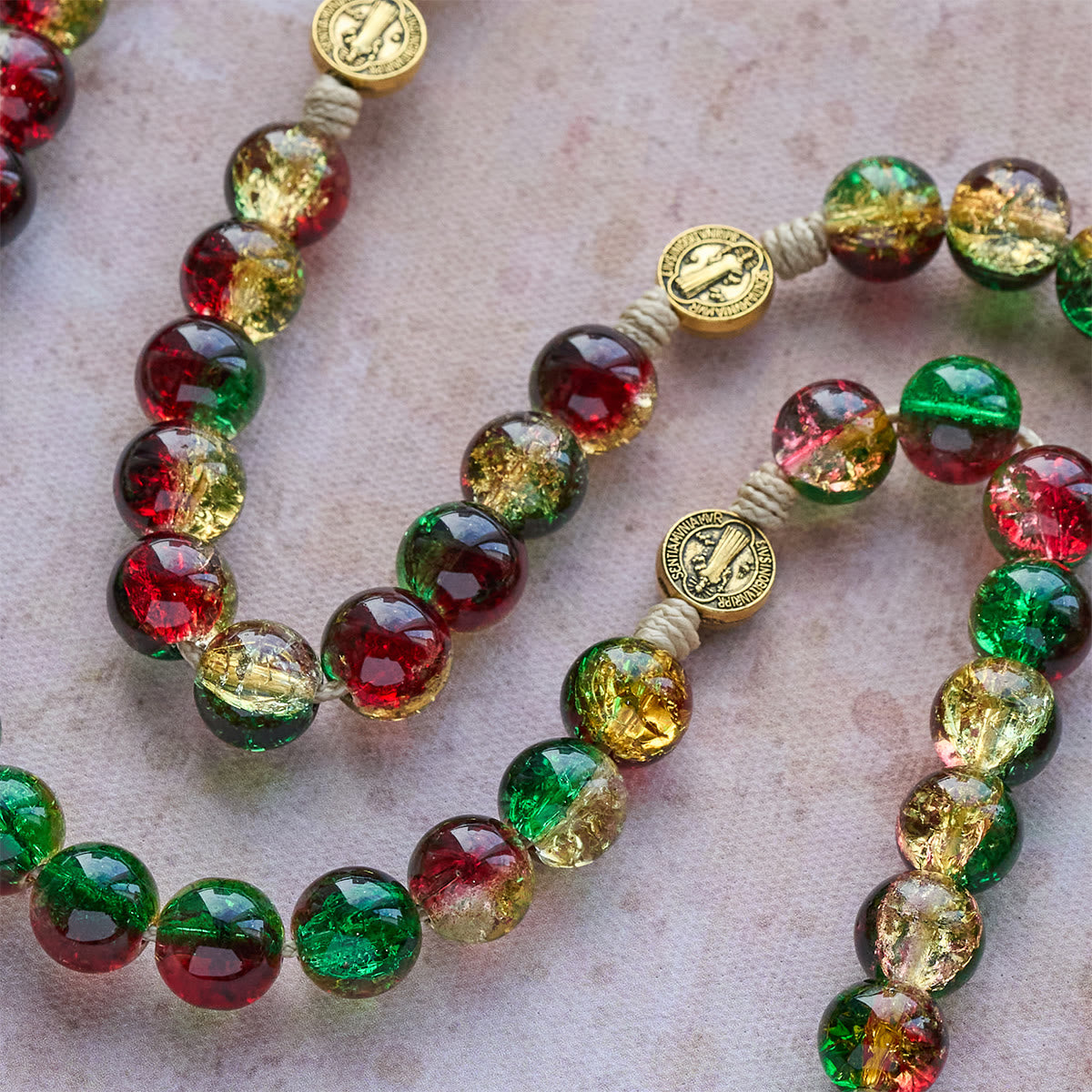 Christianartworkshop Christmas Gift: Christmas Glass Rosary with Cross: Faithful Celebration & Festive Luster