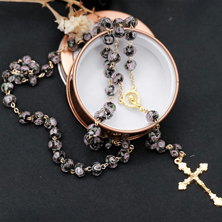Christianartworkshop Flower Rose Glazed Beads Rosary with Mary & Crucifix