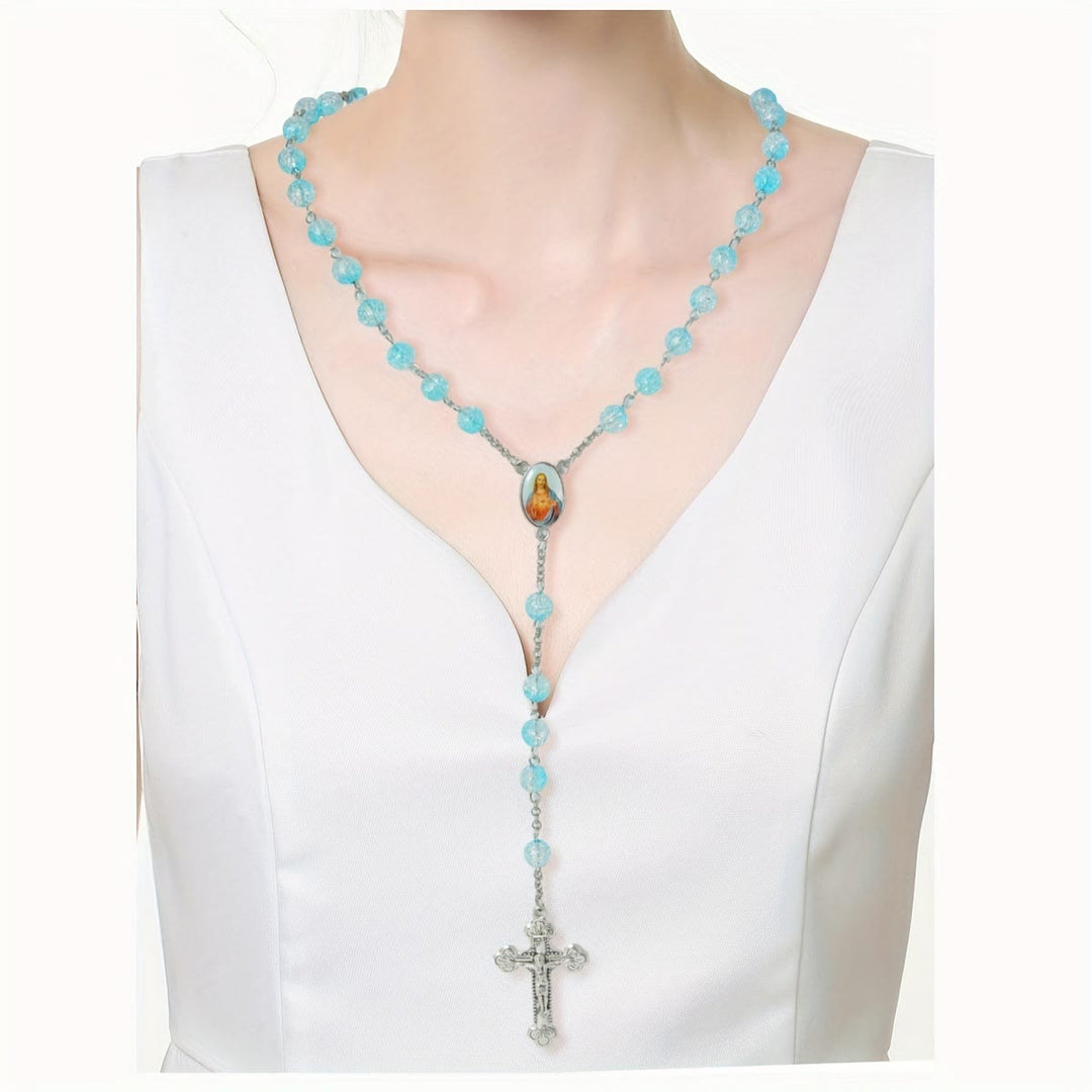Celestial Blue Glass Beads Rosary with Jesus Heart & Crucifix