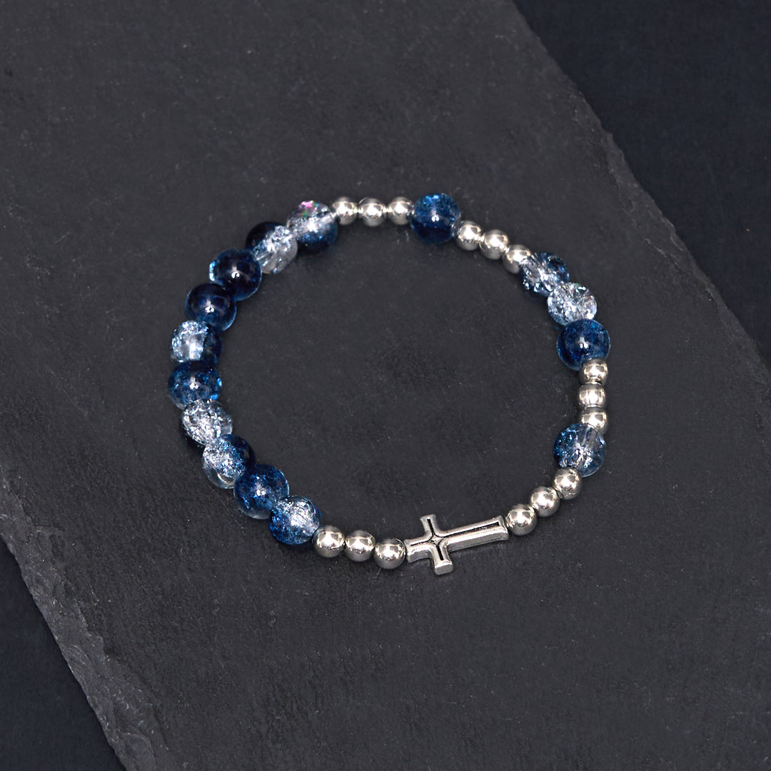 Crafted from high-quality blue acrylic beads, the rosary/bracelet provides a vibrant, polished finish that is both durable and elegant. The nylon cord offers strength and flexibility, ensuring comfort during prayer and wear. The silver-toned crucifix is sturdy and intricately detailed, providing a focal point for meditation and spiritual connection.