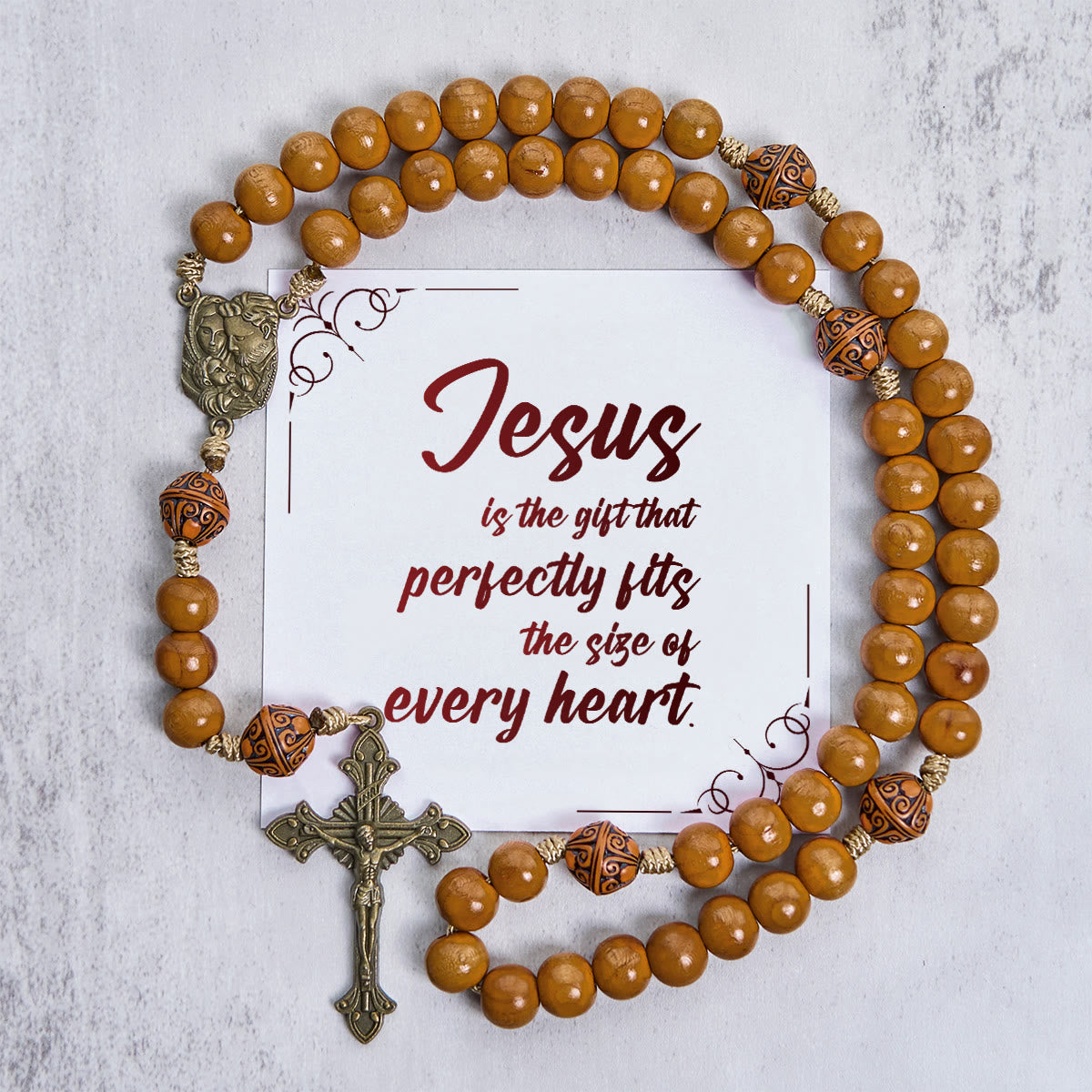 Christianartworkshop Jesus Is The Gift: 10mm Olive Wood Bead Handmade Rosary with Gift Card