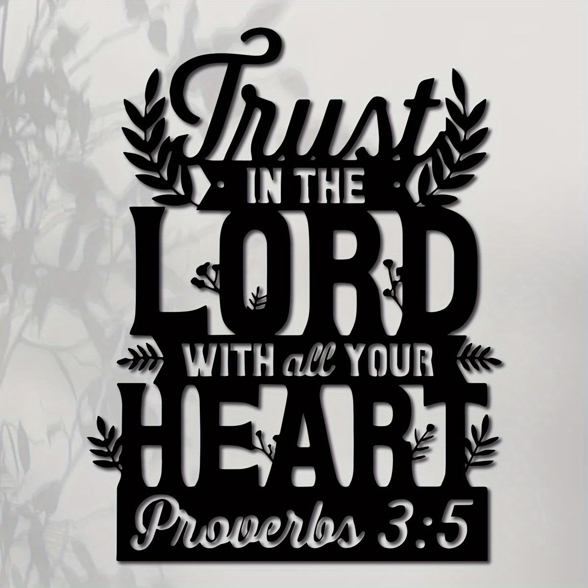 Featuring the sacred message “Trust in the Lord with all your Heart” from Proverbs 3:5, with decorative foliage, this wall art radiates faithful devotion and biblical wisdom — inviting reflection on divine trust in daily life.